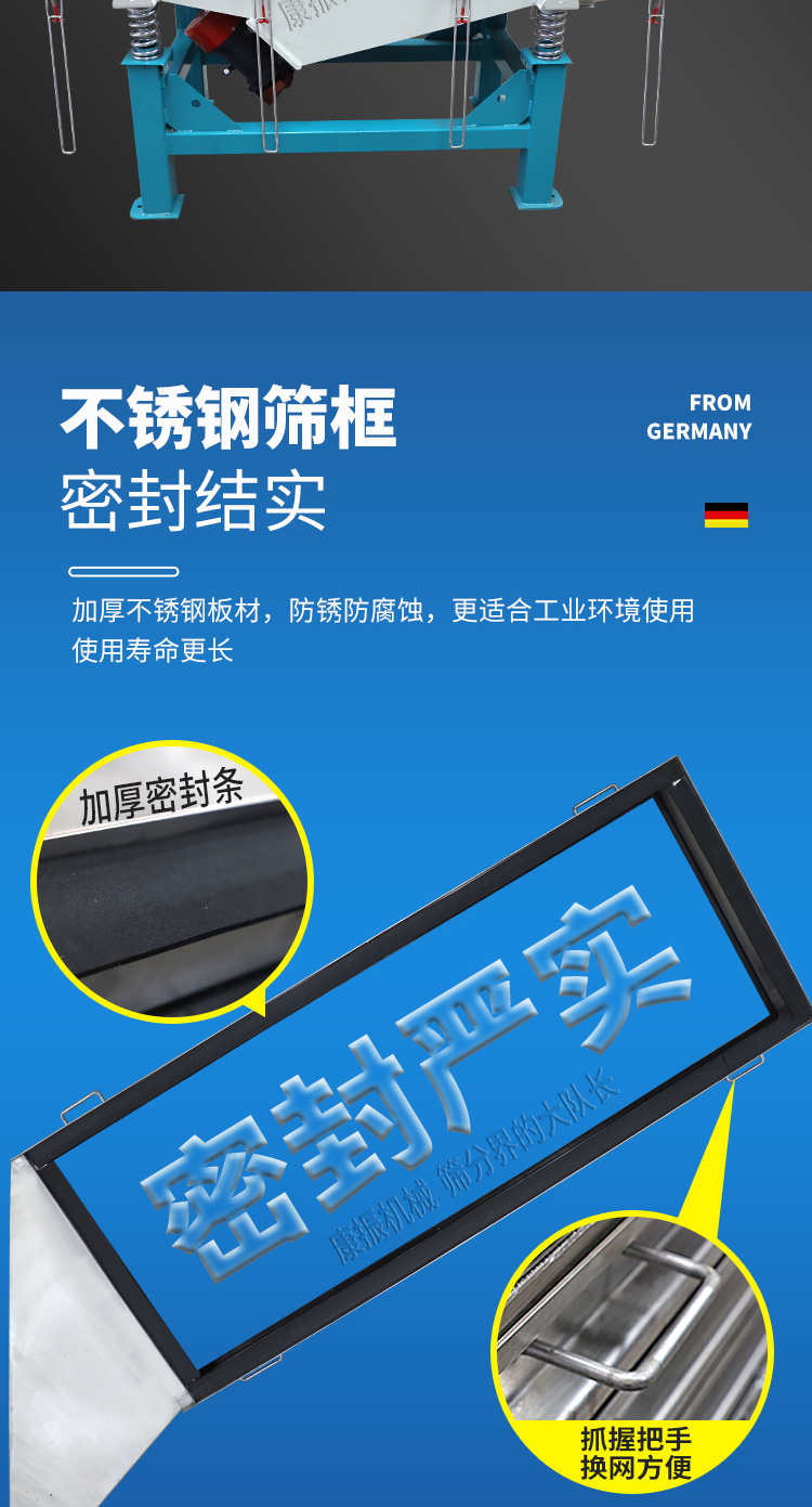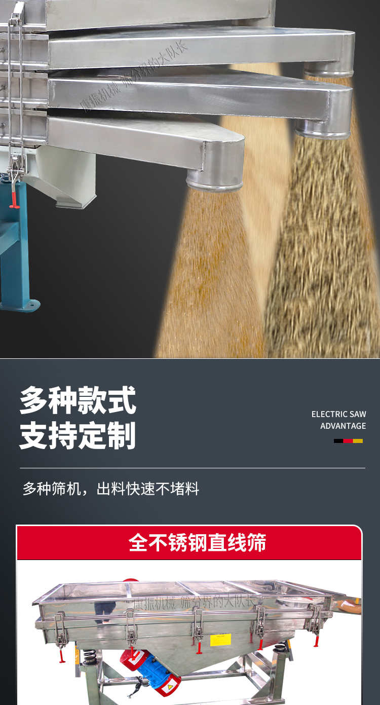 對粉狀、顆粒狀物料的篩選和分級,廣泛應用于塑料、磨料、化工、醫藥、建材、糧食、炭素、化肥等行業.直線振動篩(直線篩)系新型的篩分設備,廣泛用于礦山、煤炭、冶煉、建材、耐火材料、輕工、化工等行業。