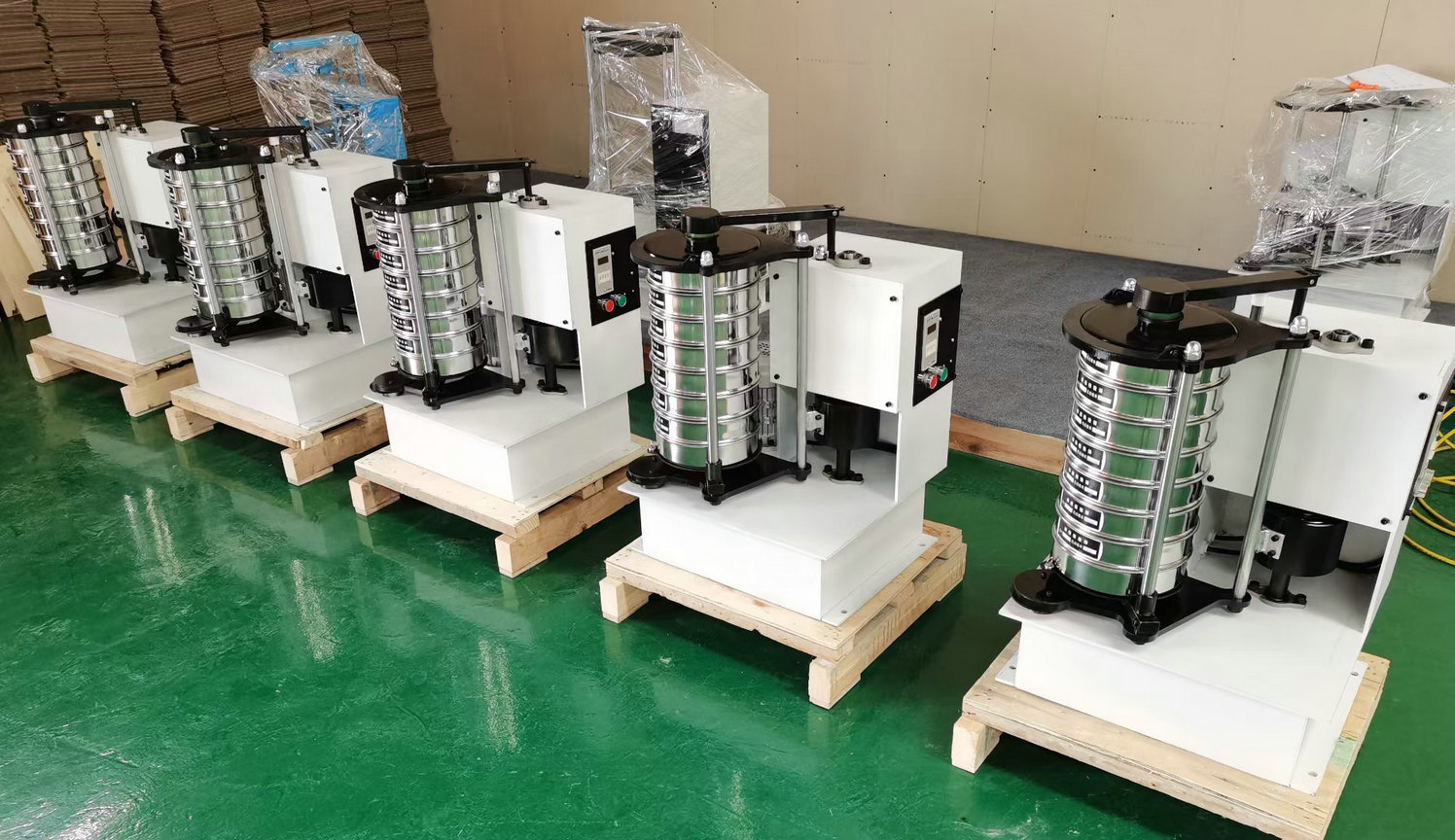 3. 把標準篩框按孔徑從小到大,從下到上依次疊放到篩框底座上。