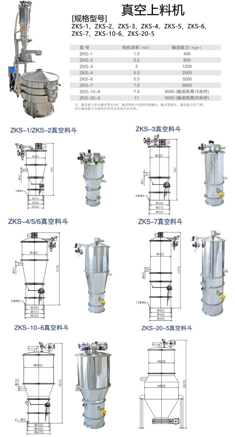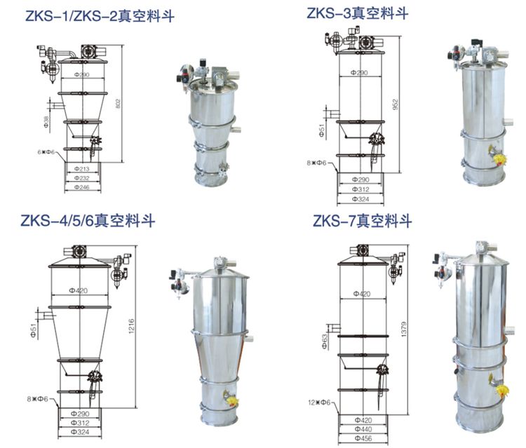 ZKS系列真空上料又稱真空輸送機(jī),是通過氣體產(chǎn)生真空輸送粉體料的設(shè)備,是氣體輸送的一種。